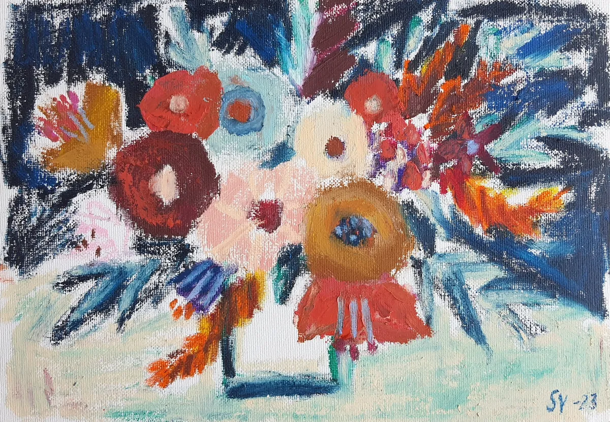 Original painting on canvas. Framed with white passerpatout, 30x40 cm frames and glass.