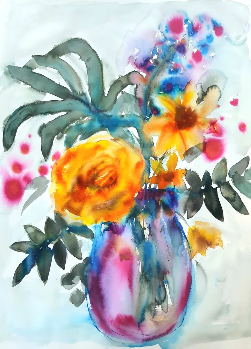 Framed original acrylic ink painting. 300 gms paper. Frame size 60x80 cm.