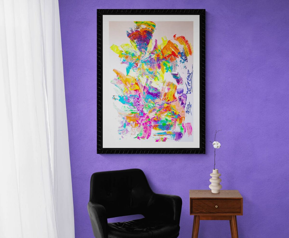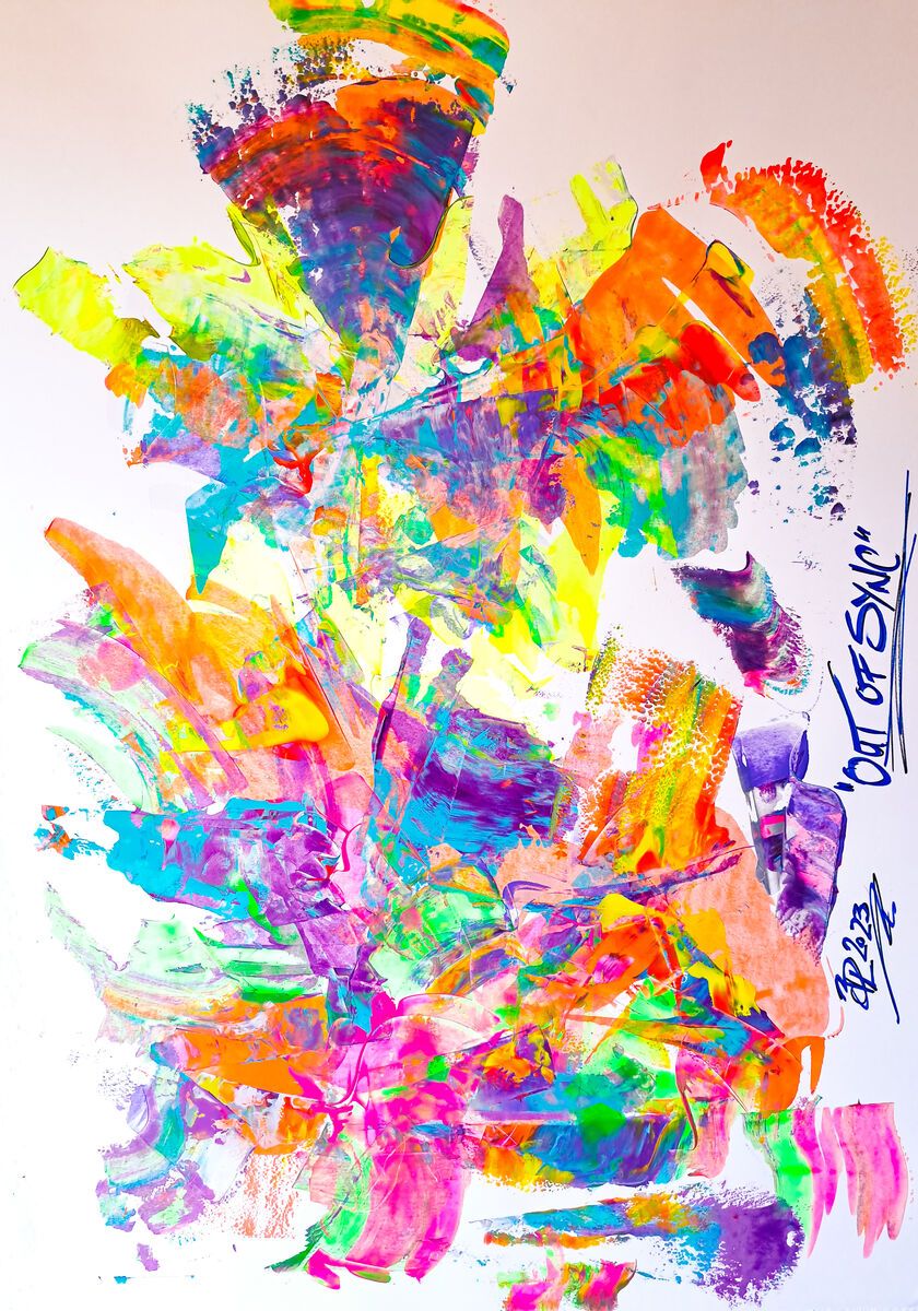 Neon acrylics & pearlescent acrylics on cream doree paper - international shipping available