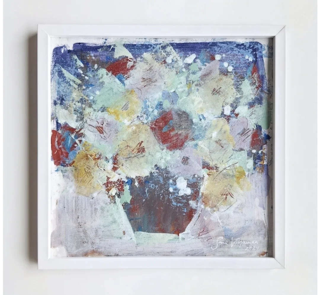 Original colourful painting almost abstract floral art. Deep canvas frames.