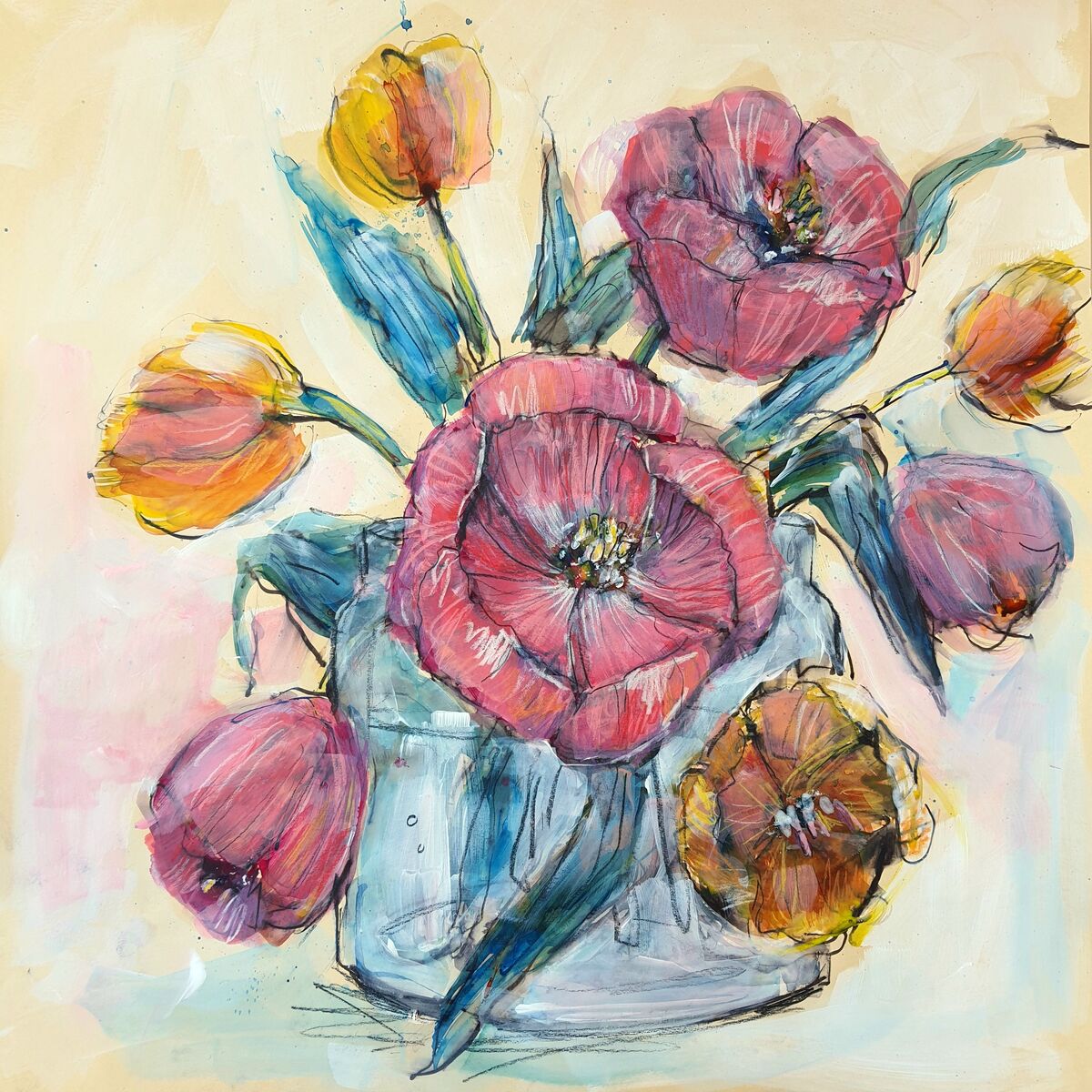 Tulips in glass jar